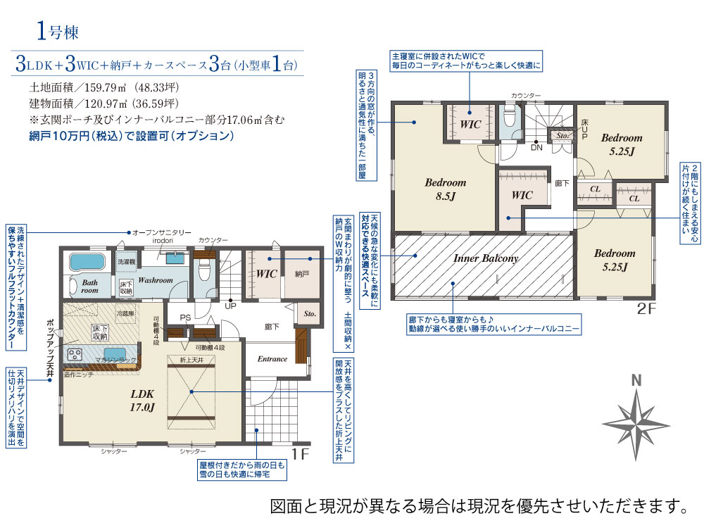 | 間取り | 3LDK+3WIC+納戸+カースペース3台(小型車1台) |