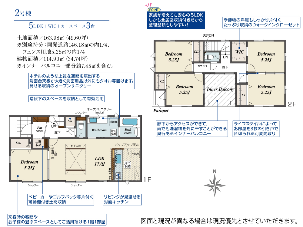 | 間取り | 5LDK+WIC+カースペース3台 | 階建て | 2 |