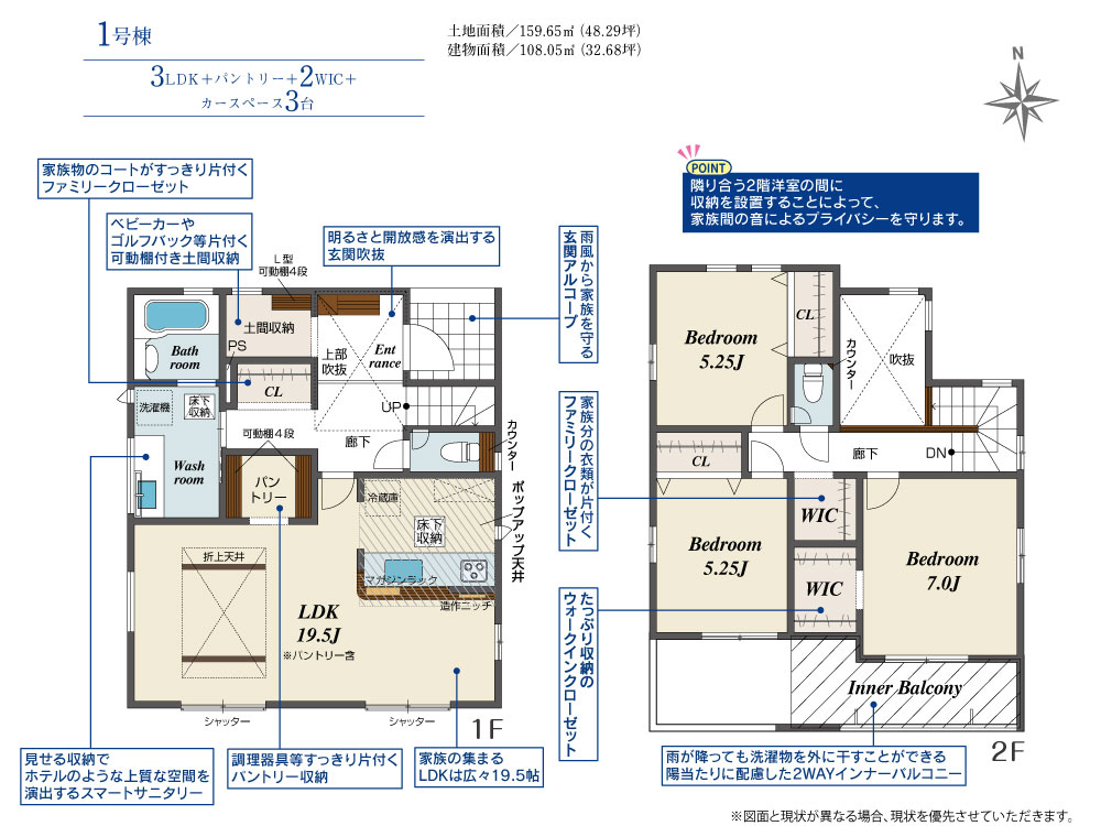 建物面積 108.05㎡(32.63坪) 土地面積 159.65㎡(48.21坪)