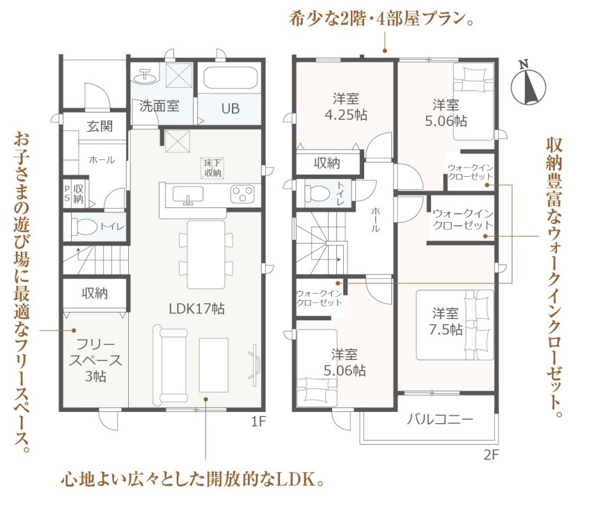 | 間取り | 4LDK+WIC+フリースペース | 階建て | 2 |