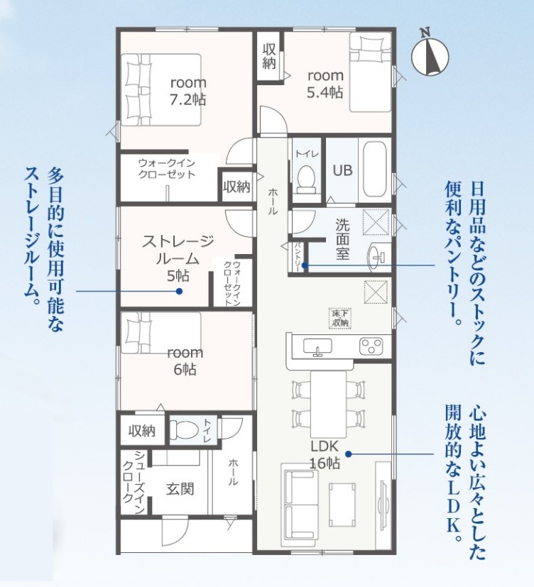 | 間取り | 3LDK+WIC+ストレージルーム |