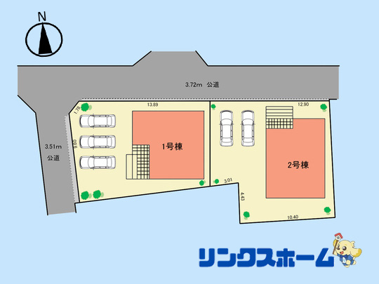 | 接道状況 | 北側3.72m公道(セットバック後幅員)西側3.51m公道(セットバック後幅員) | ||
