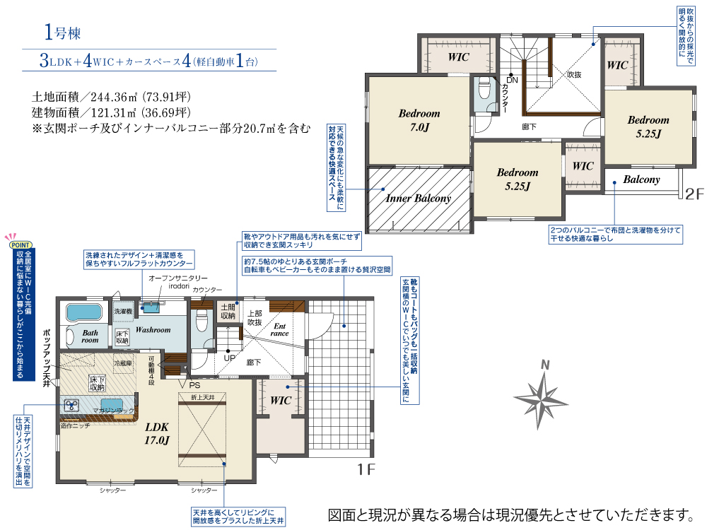 間取り 3LDK+4WIC+カースペース4(軽自動車1台)