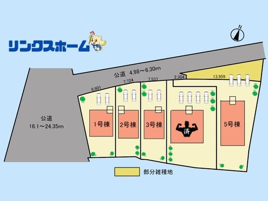| 接道状況 | 北側4.98~6.30m公道 西側16.1~24.35m | ||