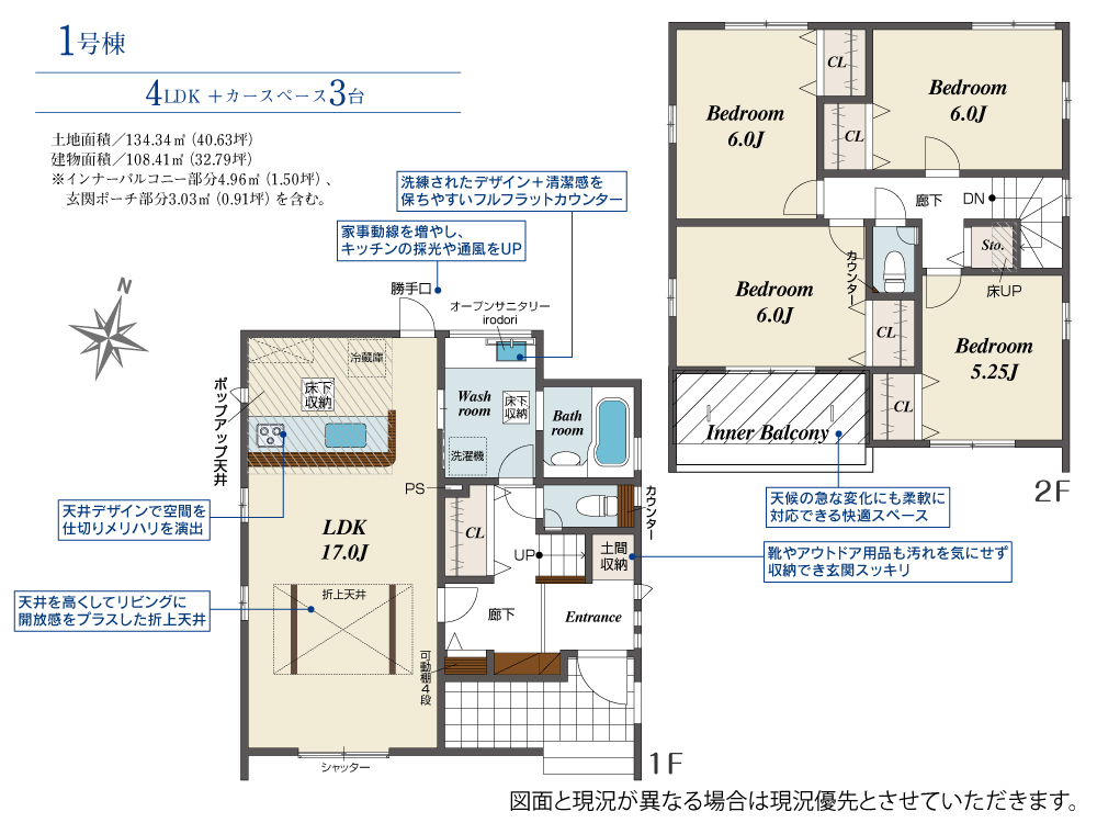 | 建物面積 | 108.41㎡(32.74坪) | 土地面積 | 134.34㎡(40.57坪) |