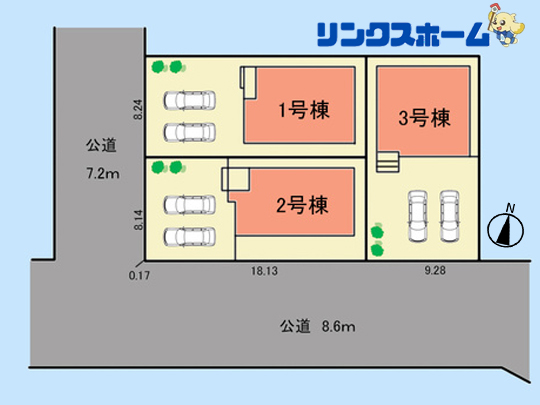 | 接道状況 | 西側7.2m公道 南側8.6m公道 | ||